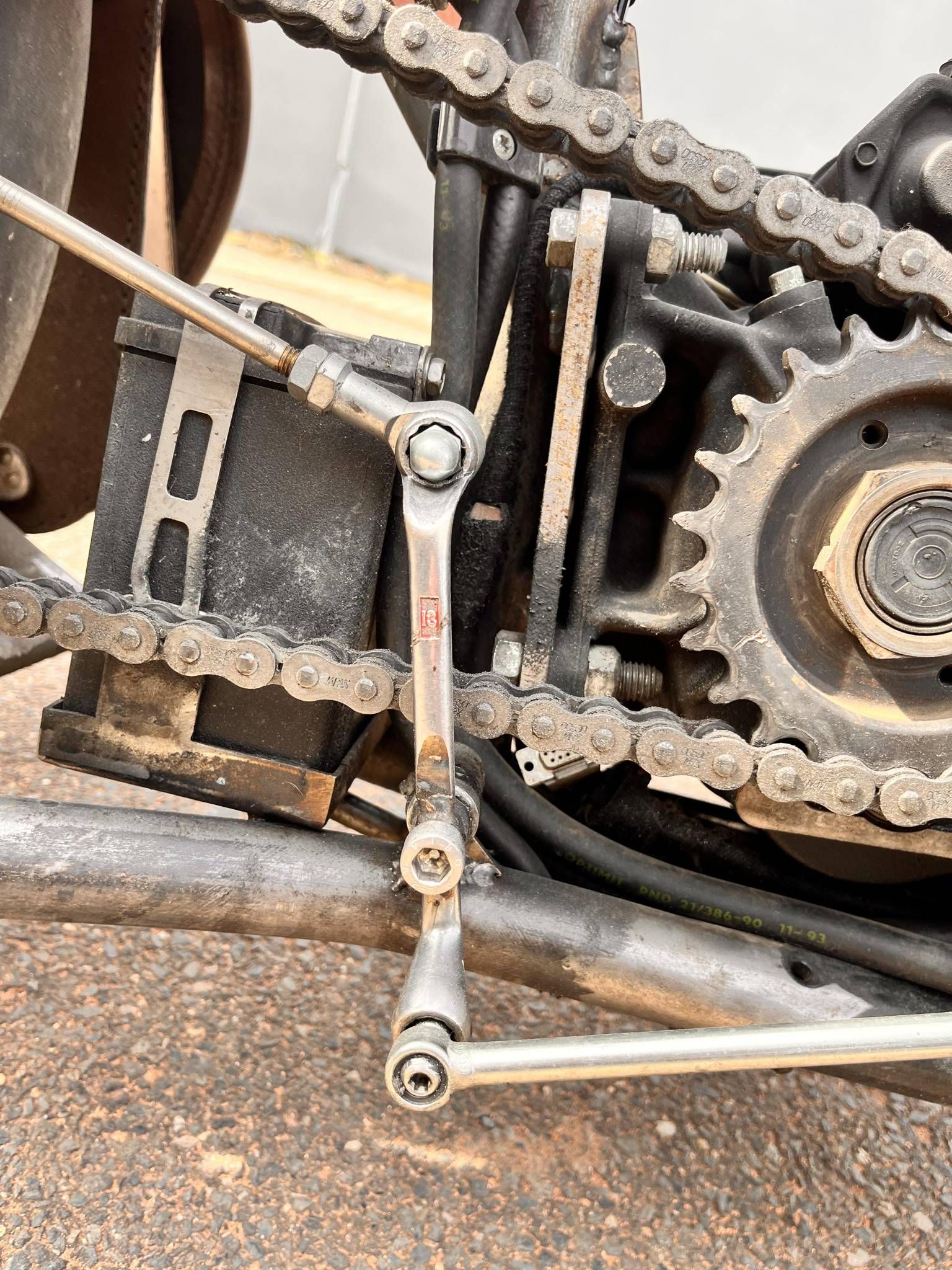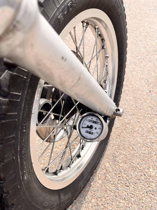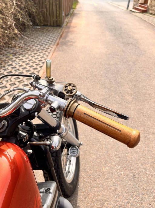 Motocykl je vybaven tzv. suicide clutch, tedy řazení a spojka na páce vedle nádrže.