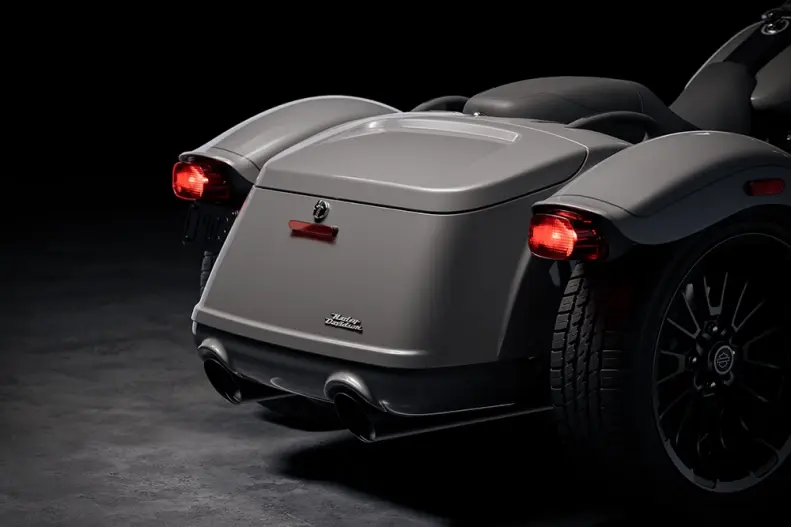 Styl cruiseru v kombinaci s funkčností triku tvoří dokonalý temně černý tříkolový hot-rod. Majestátní jízdní pozice s komfortním vybavením pro jízdu ve dvou a charakteristickým stylem Harley-Davidson.