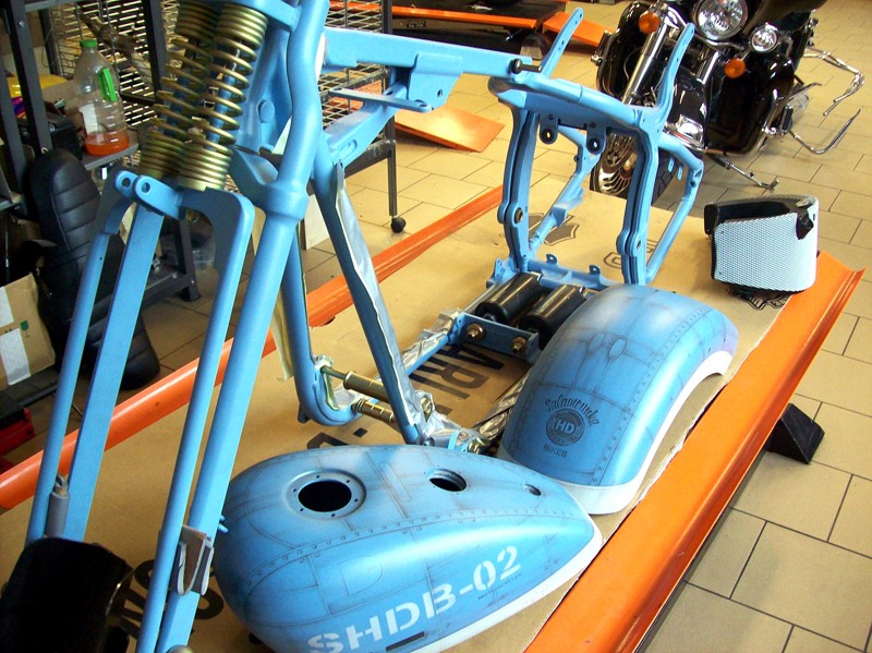 SHDB02: Nápadů, jak pojmout tento motocykl bylo na začátku mnoho, ale nakonec zvítězila varianta připodobnit motocykl letounu z 2. světové války. Základ pro motocykl posloužil Harley-Davidson Softail Deuce 2001. Prvně byl motocykl představen na výstavě Bohemia Custom 2013 v Praze. Další představení proběhlo na EuroBike Festu na Mušově, kde motocykl vyhrál 2. místo. Motor je sériový Twin Cam 88B, v černém ...